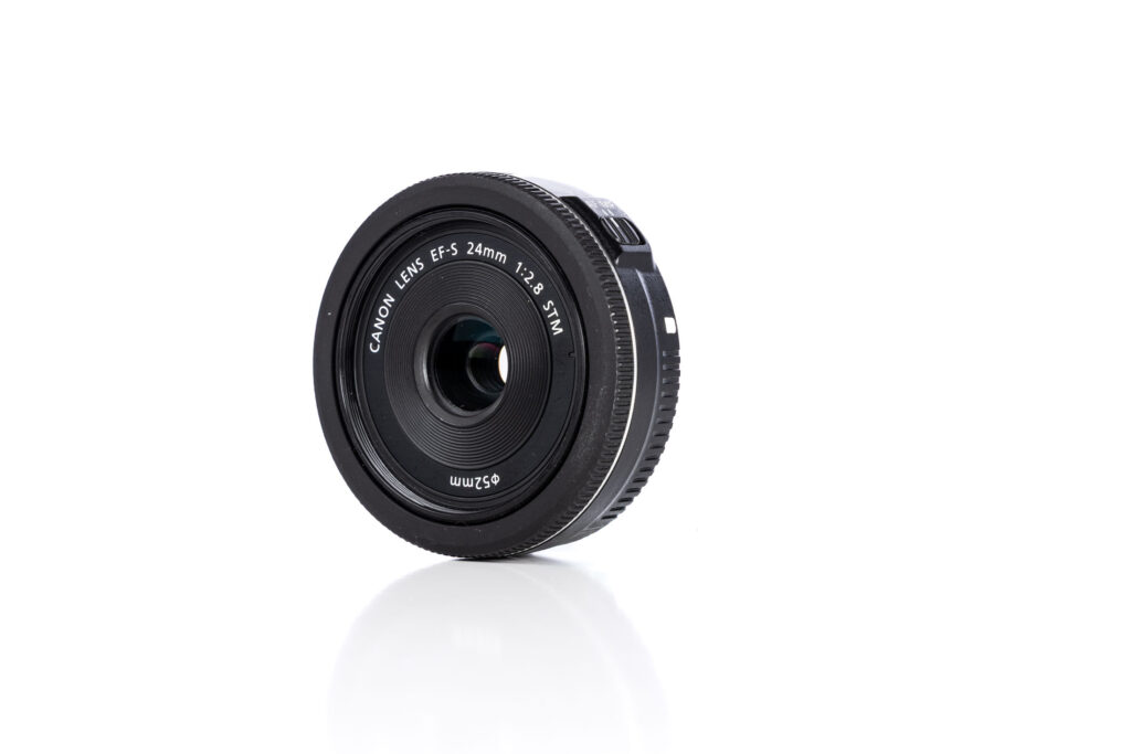 The Canon EF-S 24mm f/2.8 is compatible with all Canon EF-S mount systems. It even works on newer RF mount cameras like the EOS R, R5, and R6, as long as you have an EF-to-RF lens mount adapter.