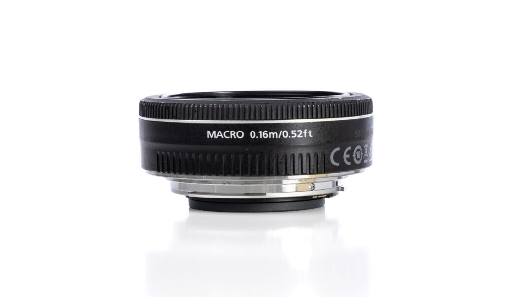 Any lens that can focus on objects closer than 12” inches qualifies as “macro”. Minimum focusing range on this lens is 6″ inches (.16 meters), and has a reproduction ratio of 1:3.7. Canon acknowledges it’s a macro lens by printing “MACRO” on the barrel.